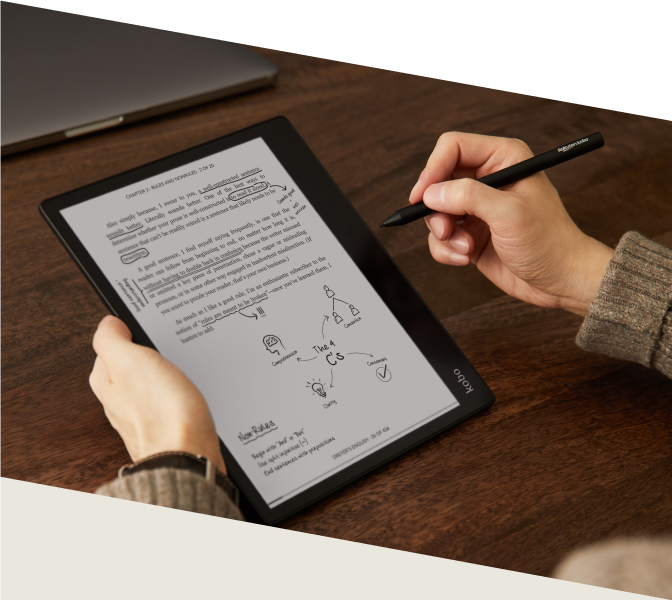 Put conventional paper aside and think bigger with an intuitive note-taking experience and an expansive 10.3” touchscreen. Use the Kobo Stylus to make notes in eBooks and PDFs*. Plus, you can create your own notebooks, where you can instantly convert your notes to clean typed text, and export them off your device as needed. With 32GB of storage, you'll be able to carry more than your book bag can handle. When you want to listen to a story, enjoy Kobo Audiobooks with Bluetooth® wireless technology†. And when you're ready for a break, simply close the SleepCover to protect Kobo Elipsa and put it to sleep. Kobo Elipsa is your book, notebook, and bookstore combined, bundled with everything you need to make your ideas a reality.